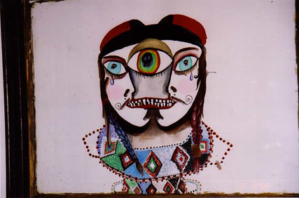 from "The Voodoo-EROS Cultural Committee presents: 'RED BONE SLIM VS. ITSELF' - an exhibition of drawings - from "the elusive visionairre RED BONE SLIM, comes ...in full color, a world of diabolical objects, manimals, and religious icongraphy, obscured through the peeping tom kaleidoscopic rainbow of a child", March 9th thru April 14th, 2006, at the The Voodooo-EROS Museum of Nice Items, 123 Ludlow St, NYC - aka **AFF**"
